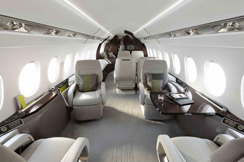 L’intérieur est éclairé par 28 hublots, tous plus grands que ceux du Falcon 7X.