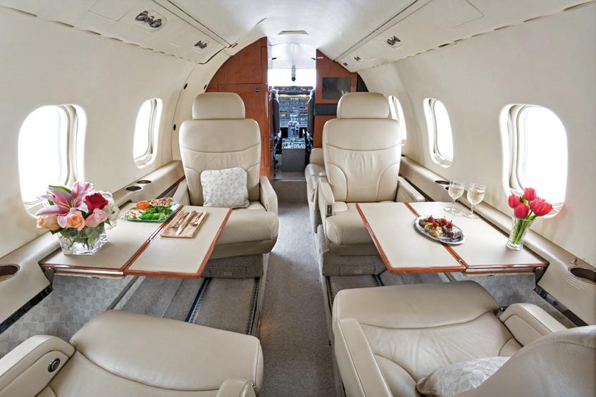 Sa cabine est la plus spacieuse de la gamme Learjet et peut accueillir sept ou huit passagers dans un espace conçu pour apporter de l'aisance là où elle est nécessaire, notamment sur les accoudoirs des passagers. Les équipements standards incluent des tables de travail escamotables et d'un radiotéléphone. Un fax, un micro-ondes et une cafetière peuvent également être ajoutés en option.