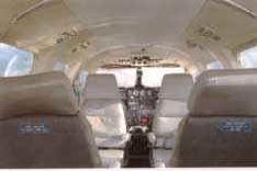 Sa cabine rappelant celle d'un avion de ligne peut être configurée pour accueillir neuf passagers.